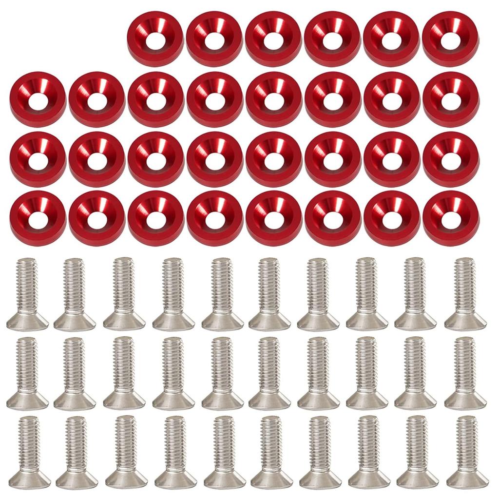 YESHMA 30 Pcs Bumper Fender Washers M6X20Mm With Bolts, Engine Bay Dress Up Fastener Kit Aluminum For Headlights Trunk License Plate Frame (Red)