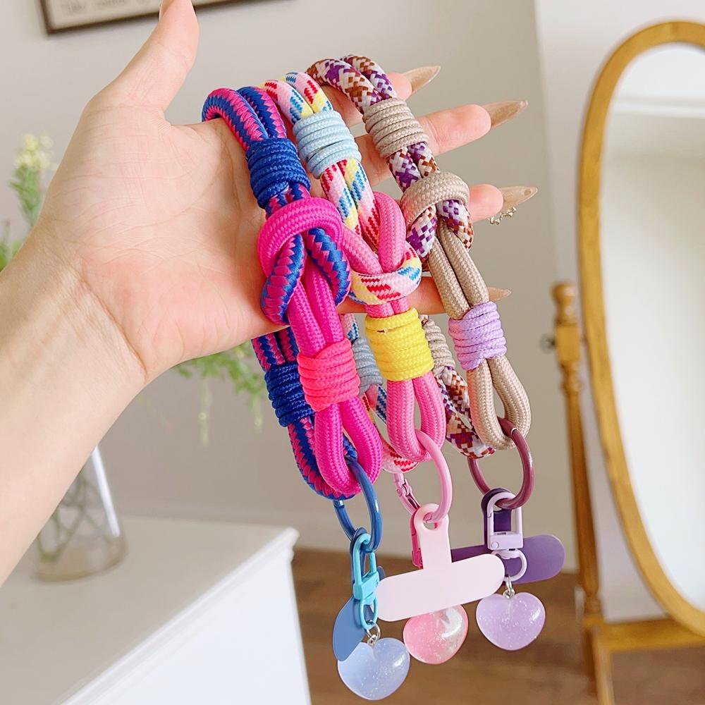 Korea Universal Braided Mobile Phone Lanyard Strap Love pendant Hanging Chain Ring Cord Patch Wrist Strap Cell Phone Detachable