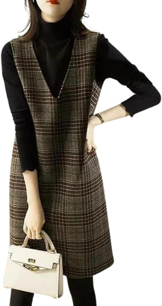 ![Check Jumper and Long 2 Gray and Dress [1/2style] V-neck Skirt, Knee-Length Length, Patterns, Brown, Sleeveless, Layered, Figure-Flattening (Brown, L)](https://img.joomcdn.net/af664da39930a5481163d32b10a75be2db39d41a_542_1024.jpeg)