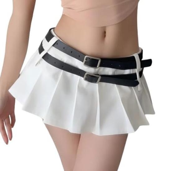 Syvent White Belted Ultra Micro Mini Plus Ultra Mini Pleated Solid Length 12F008 Skirt, Sexy, Size, Skirt, Color, Women's, Cute, 23-25cm,