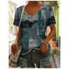 Loose Women's V-Neck Short Sleeve Graffiti Printed Casual Top T-Shirts Women’s