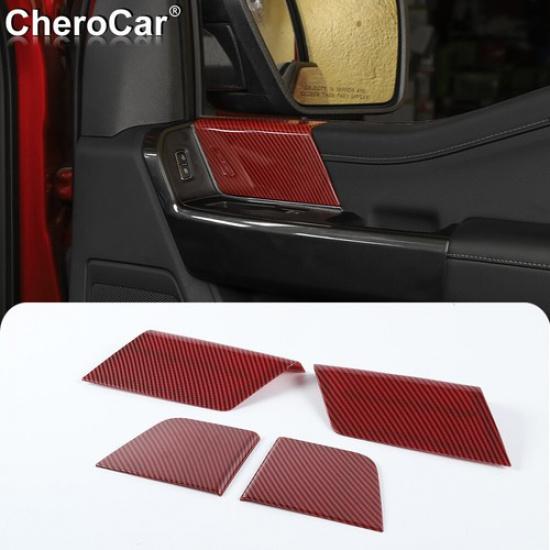 4X Inner Door Panel Decor Cover Accessories For Ford F150 + Red Carbon Fiber