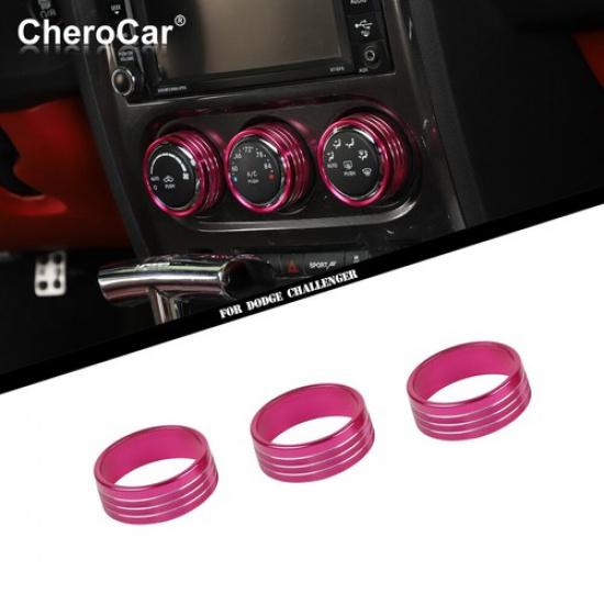 3x Klimaanlagenschalter-Knopf Dekor-Zierblende für Dodge Challenger 09-14 Rosa