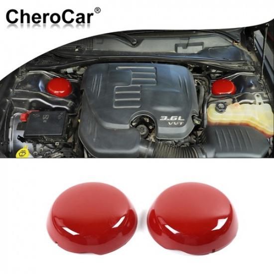 2x Red Engine Compartment Suspension Trim Cover For Dodge Challenger/Charger 09+