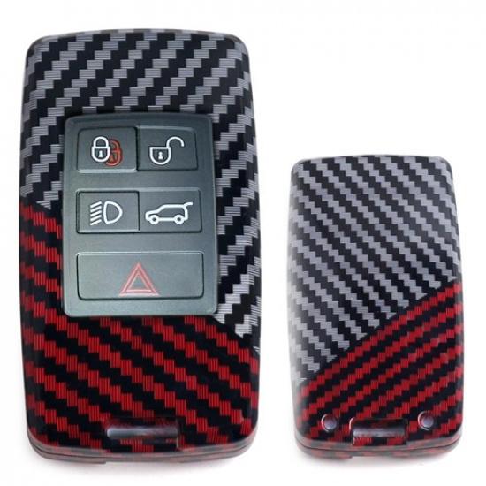 Interchange Teilenummer: Glänzende Schwarz/Rot Mix Farbe "Kohlefaser"-Optik Hartplastik Schlüsselanhänger-Hülle Kompatibel mit Land Rover 2018-up Range, Rover/Sport/Evoque, Defender oder Discovery Intelligentem Smart Key