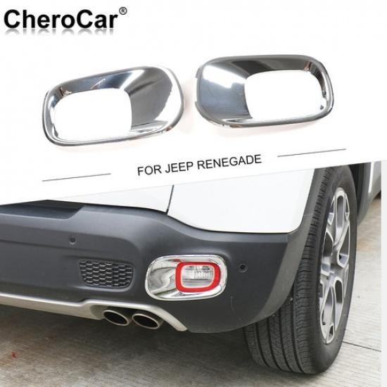 2x Chrome Rear Tail Fog Light Lamp Cover Trim Frame For Jeep Renegade 2016-202