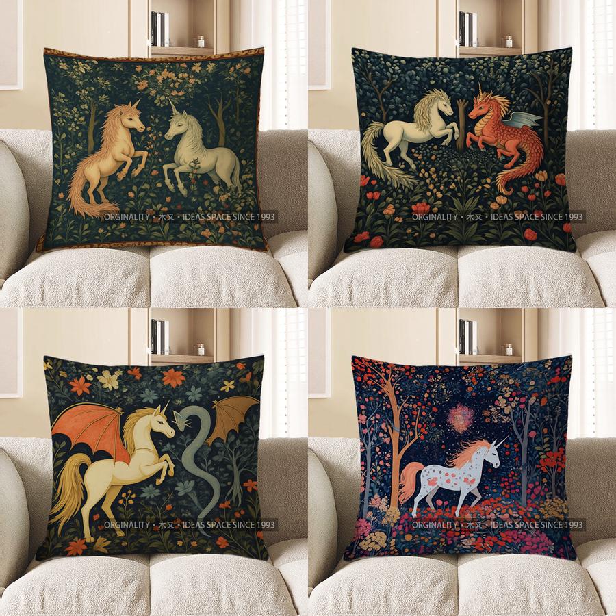 Home Decor Unicorns in Floral Forest Pillow Cover Pattern Cushion Cover Suitable for Sofa Bedroom Car Pillow Cover
