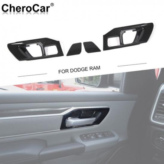 4pcs Door Handle Bowl Frame Trim Cover for Dodge Ram 2018+Black Carbon Fiber
