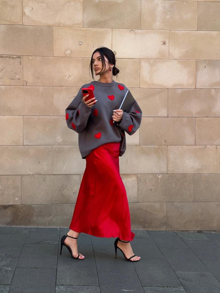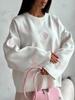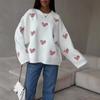 Früher Herbst Lässiger Stil Drapierter Rundhalsausschnitt Langarm Damen Wollpullover Herzfarbe Basisschicht Oberteil Herbst