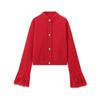 Ins Herbst Neuer Stil Damen Elegant Mode Rotes Federstrick Cardigan Mantel