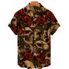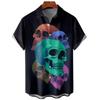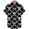 Mode Totenkopf Halloween Print Herrenhemd Street Trend Harajuku Revers Oberteil Hip Hop Punk Stil Übergroßes Hemd Lässig Kurzarm