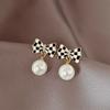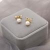 S925 Silver Needle Sweet Versatile Unique Imitation Pearl Bow Stud Earrings Trendy Niche Design Sense Premium Earrings