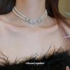 Europäische und amerikanische französische Retro-Perlen-Choker-Halskette, Imitationsperlen-Quadrat-Strass-Mode-Collier-Schmuck für Frauen