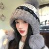 Fair Island Gray Jacquard Hairball Knitted Hat Women's Winter Thickened Warm Ear Protector Hat Small Face Cold Wool Hat