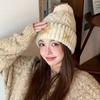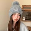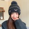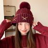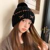 Knitted hat women's velvet thickened warm cold hat versatile ear protectors loose big head circumference hairball wool hat
