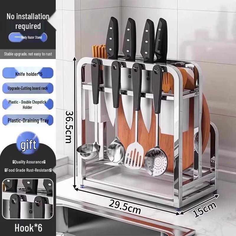 Wall-Mounted 304 Stainless Steel Kitchen Knife and Chopping Board Holder