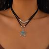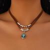 Vintage Ethnisches Türkis Kaktus Halsband mit Metallherz & Samt-Choker