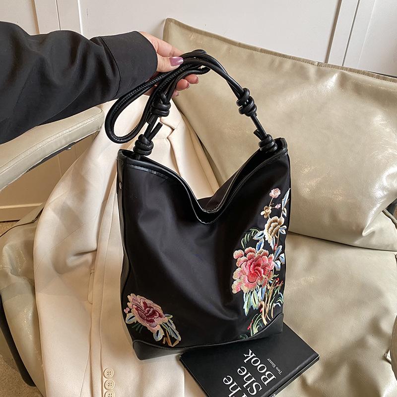 Einkaufstasche, Handtasche mit Blumenstickerei, Umhängetasche für Damen mittleren Alters, Umhängetasche