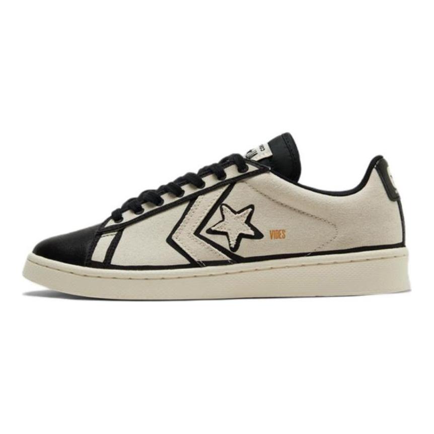 Joshua Vides x Converse Cons Pro Leather Canvas Leder Low-Top Skate-Schuhe Unisex Off-White und Schwarz
