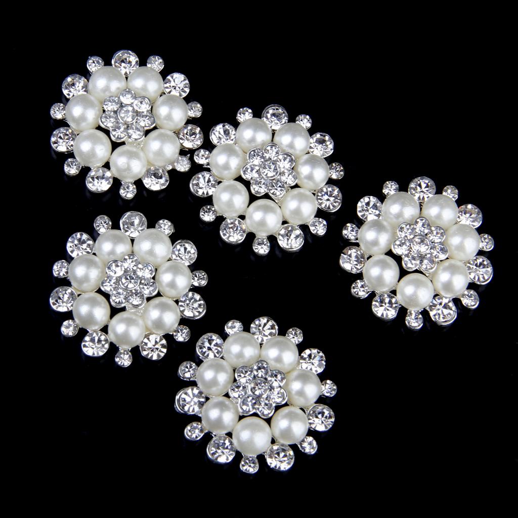 5pcs 30mm Crystal Rhinestone Buttons Pearl Flower Embellishments Buttons Flatback DIY Buckles for Wedding Jewelry Shoes Decor