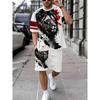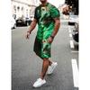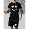Herren Sommer Kurzarm Set Hip Hop Cartoon Bär Print Kurzarm Oberteil Shorts Lässig Zweiteilig Outdoor Urban Street Fashion