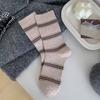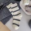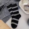 Women's Striped Simple Autumn and Winter Sporty Cotton Socks, Black and White Long Socks, Trendy, Slightly Pressed, Versatile School Mid-calf Socks