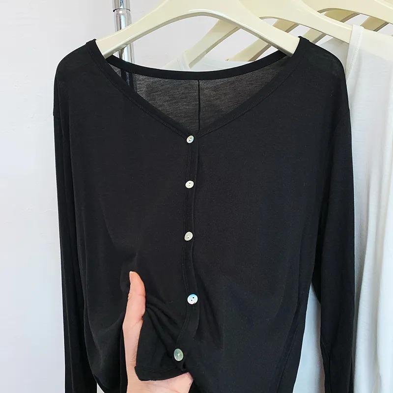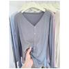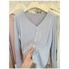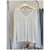 Beiges V-Ausschnitt Knopfleisten-Langarmtop Dehnbarer Weicher Stoff Lockere Bequeme Passform Damen Alltagsbluse