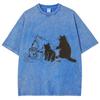 Baumwolle Gewaschenes Denim T-Shirt Damen Hawaii Sommer Katzen Print T-Shirts Lässig Weich Kurzarm Kleidung Vintage
