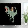 Kreative Tiere Duschvorhänge Badebär Meereswellen Haie Katze Dinosaurier Lustiges Design Stoff Badezimmer Dekor Duschvorhang Set