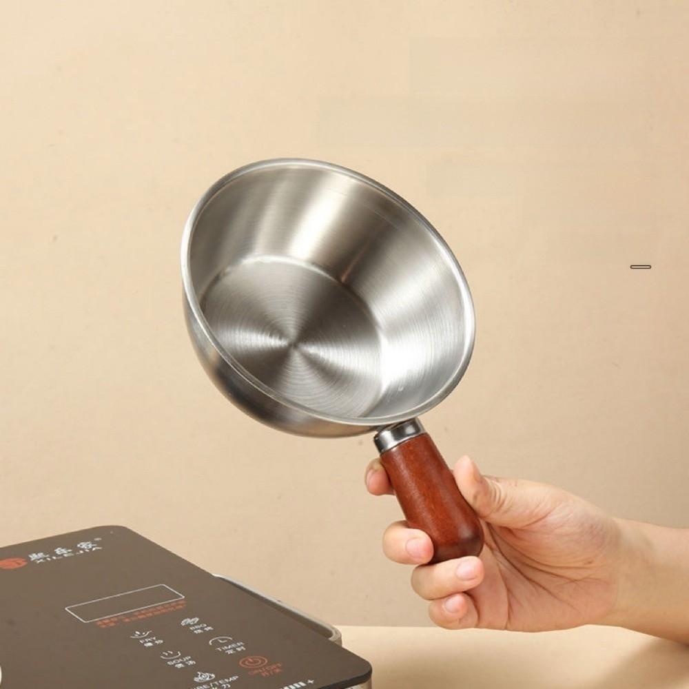 Portable 201 Stainless Steel Pot Walnut Wood Handle Salad Bowl New Small Pot Bowl Cooking Tool