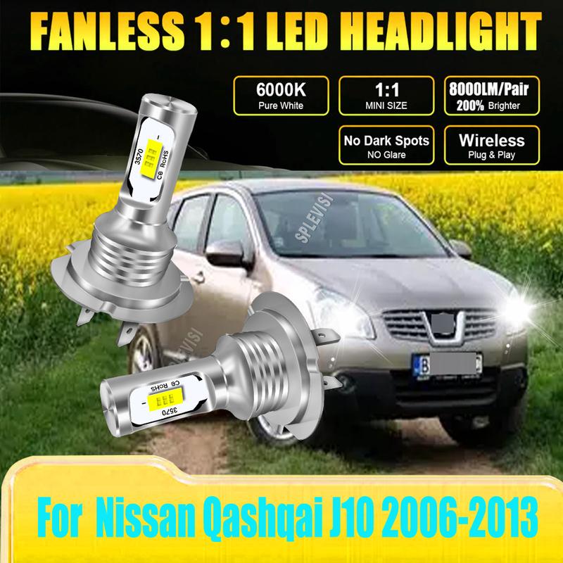 LED Headlight Low Bulb White perfect beam pattern replicate the factory halogen For Nissan Qashqai J10 2006 2007 2008 2009-2013