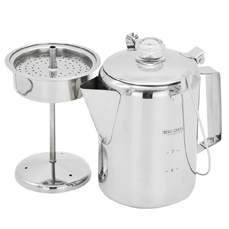 Kaffeemaschine mit praktischem Ausgießer, Klappdeckel, 9 Tassen Fassungsvermögen, Edelstahl-Kaffeekanne für Camping und Zuhause