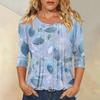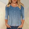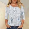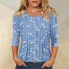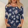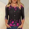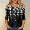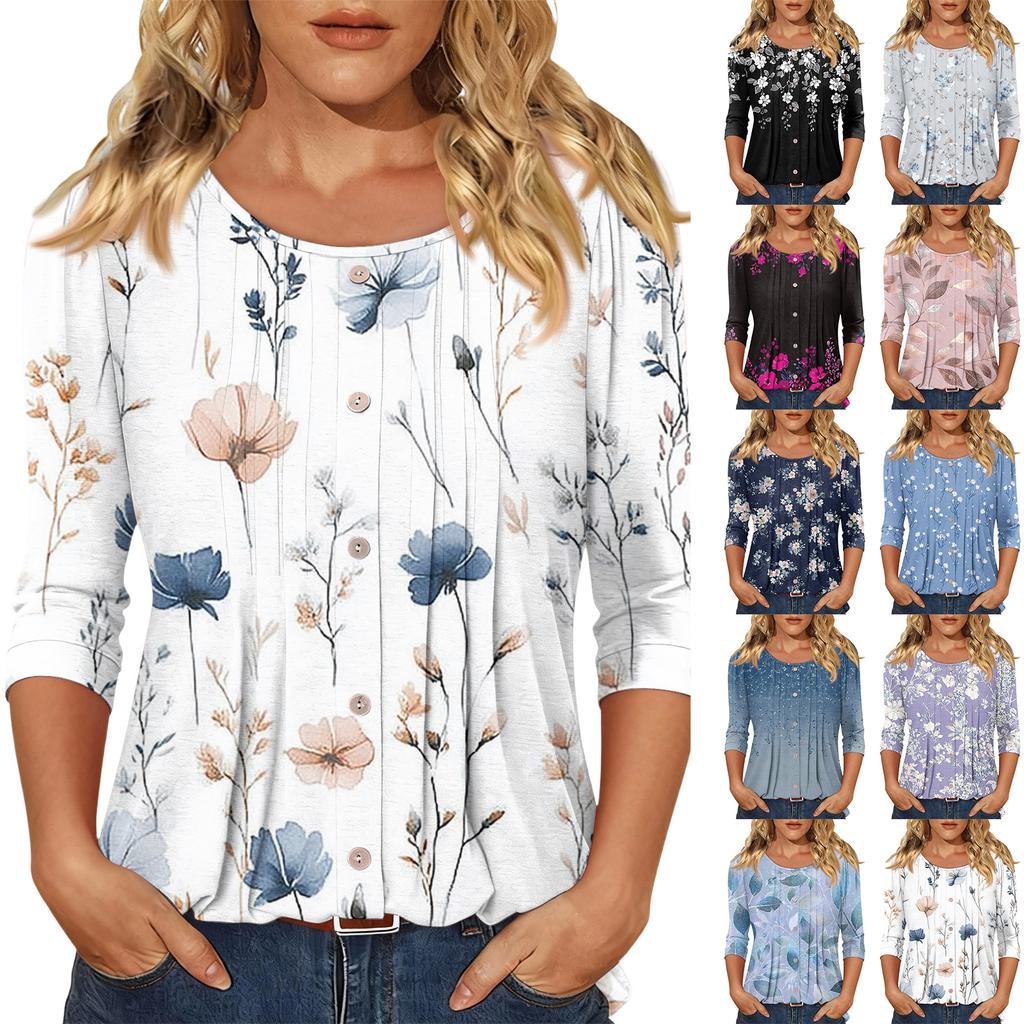 Damen Modisches Lässiges Dreiviertelarm Knopfleisten Oberteil mit Blumenmuster und Rundhalsausschnitt