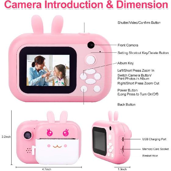 MINIBEAR Kinderkamera Sofortbildkamera für Kinder Digitalkamera Kleinkindspielzeug Weihnachts-Geburtstagsgeschenke für 3 4 5 6 7 8 9 10 Jährige Jungen Mädchen,