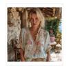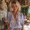 Sommer Neues V-Ausschnitt Elegant und Künstlerisch Retro-Stil Kurzarm-Top für Damen