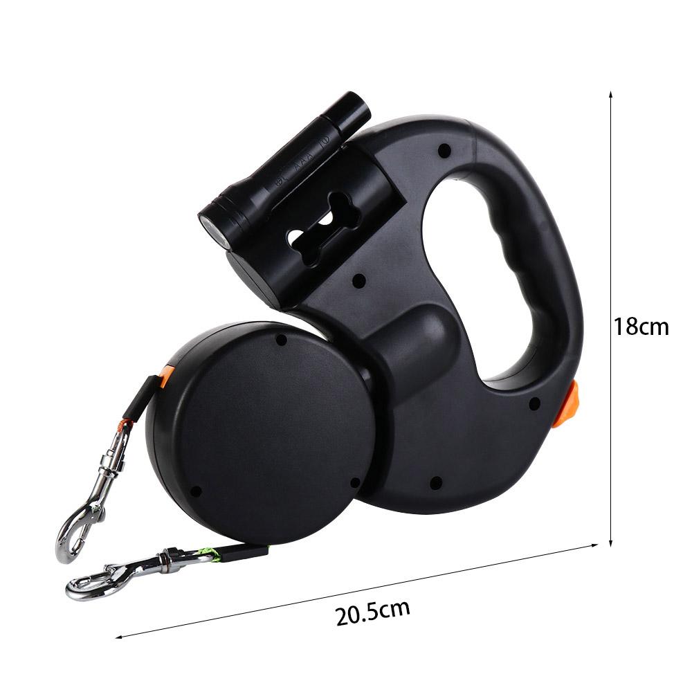 Mit Lichtern Doppelte Hunde-Gassileine Reflektierend Verstellbar Dual Einziehbar Rotationsseil Kunststoff Nylon