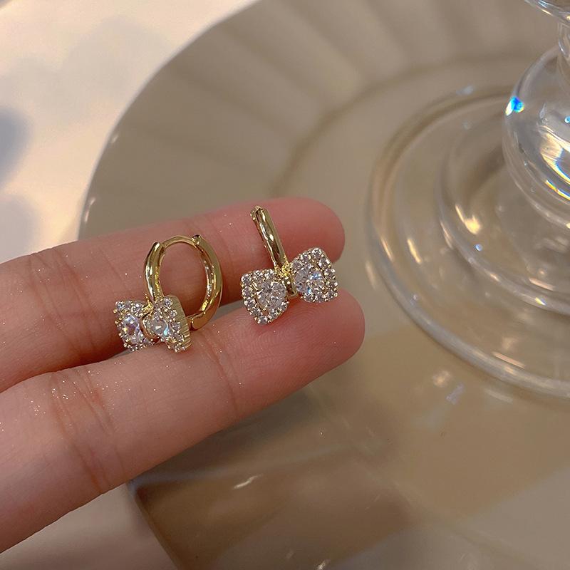 Light Luxury Bow Zircon Earrings Female Temperament Niche Unique Design Sense Senior Sense of Cute Super Fairies Earrings Dainty Earrings Daily Wear