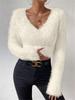 Calvin Klein Casual Soft Short Loose V-Neck Long Sleeve Knit Sweater Women tops 47D388G-67U
