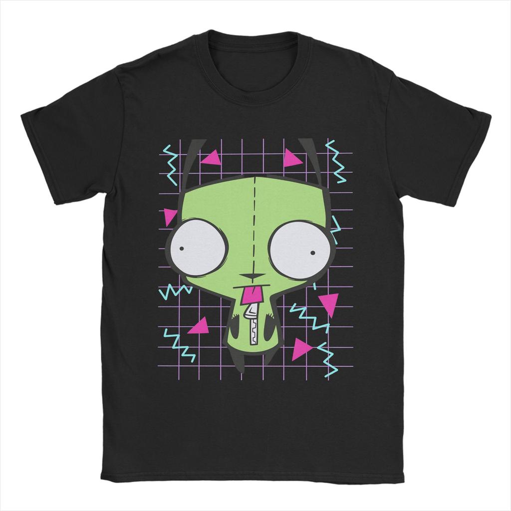 Herren Invader Zim T-Shirt Reine Baumwolle Kleidung Humorvolles Kurzarm Rundhals T-Shirt Bedruckte T-Shirts