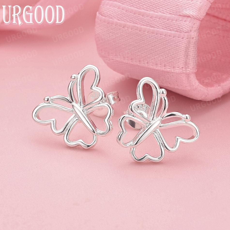 925 Sterling Silver Butterfly Pierced Earrings Fashion Wedding Jewelry