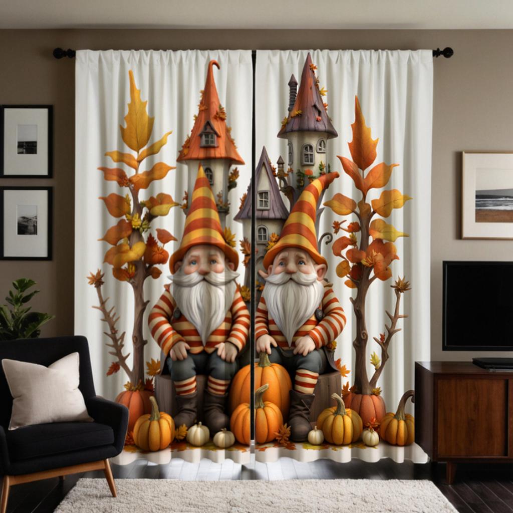 2 Stück HD Thanksgiving Amerikanisches Schloss Kürbis Ahornblatt alter Mann dekorativer Vorhang Gelbe Krawatte digital bedruckter Vorhang Zuhause de