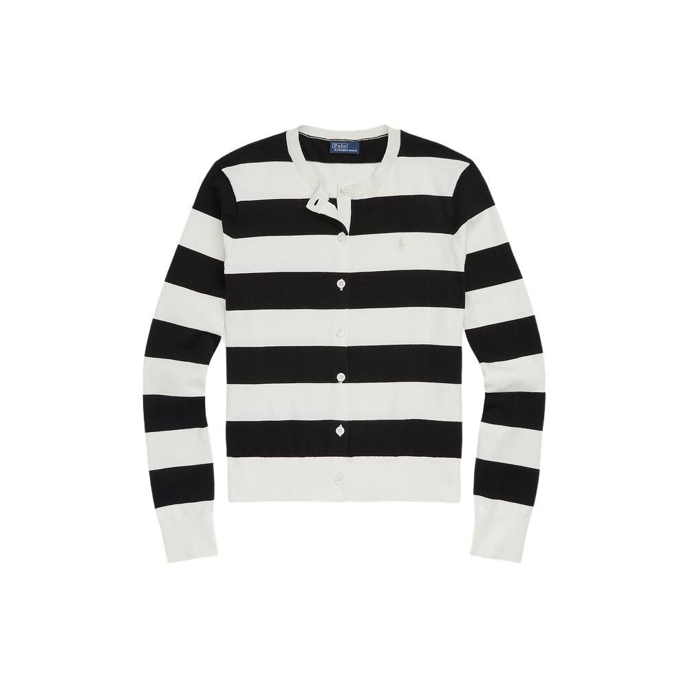 Polo Ralph Lauren Ss23 Gestreifte einreihige Strickjacke mit langen Ärmeln für Damen Strickjacken Schwarz WMPOSWENDW20141-999