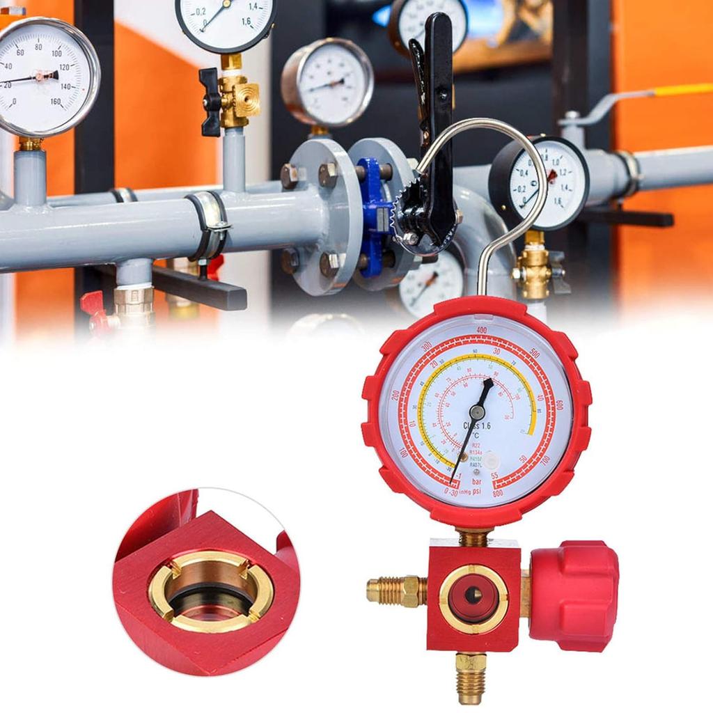 Air Condition Manifold Gauge, with G1/4" Thread, High Pressure AC Refrigeration Gauge Tool, for R22/R410A/R134A/R407C