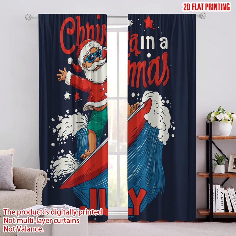 2 Stück, 2D-Flachdruck Kreative Vorhänge Surfender Weihnachtsmann & Rentier Polyestergewebe (ohne Stange) Festlicher Gebrauch für Schlafzimmer, Wohnzimmer