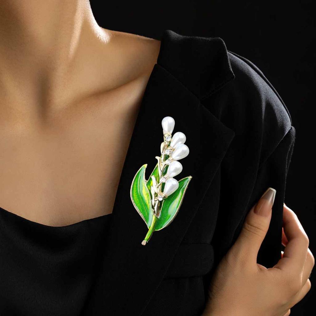 Emaille Perlenblatt Brosche, Damen High-End Schmuck, Vielseitige Accessoires für Anzüge und Kleider