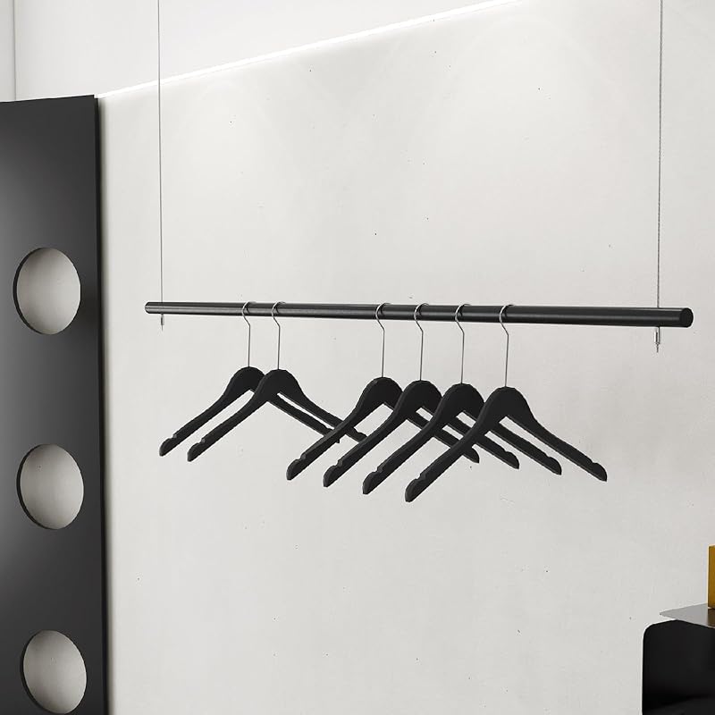 Height Adjustable Metal Clothing Hanging Racks,Commercial Wedding Dress Display Shelf Window Hanging Garment Rack, Ceiling Mount Clothes Storage