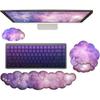 [Natural Rubber Non-Slip Base]The non-slip rubber base keyboard pad is made of natural rubber and is safe to use. Provides a firm grip to securely secure the keyboard wrist rest to your desk, allowing for intense gaming and office use without worrying about slippage or movement. You just need to gently tear the protective film, place the mouse pad on the desktop and start using it. It will be firmly fixed to the desktop, which is a feature that other mouse pads do not have. This upgraded cloud mouse pad with wrist rest has been loved by many people!