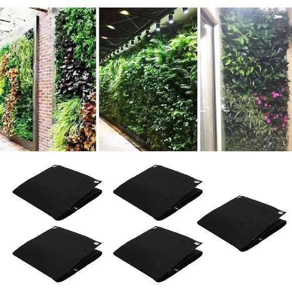 Vertical Garden Wall Hanging Planter with 3 Pockets 5Pcs Plant Growing Bags Wall Mounted Degradable 3Pockets Planter Garden Accessory Wall Mounted