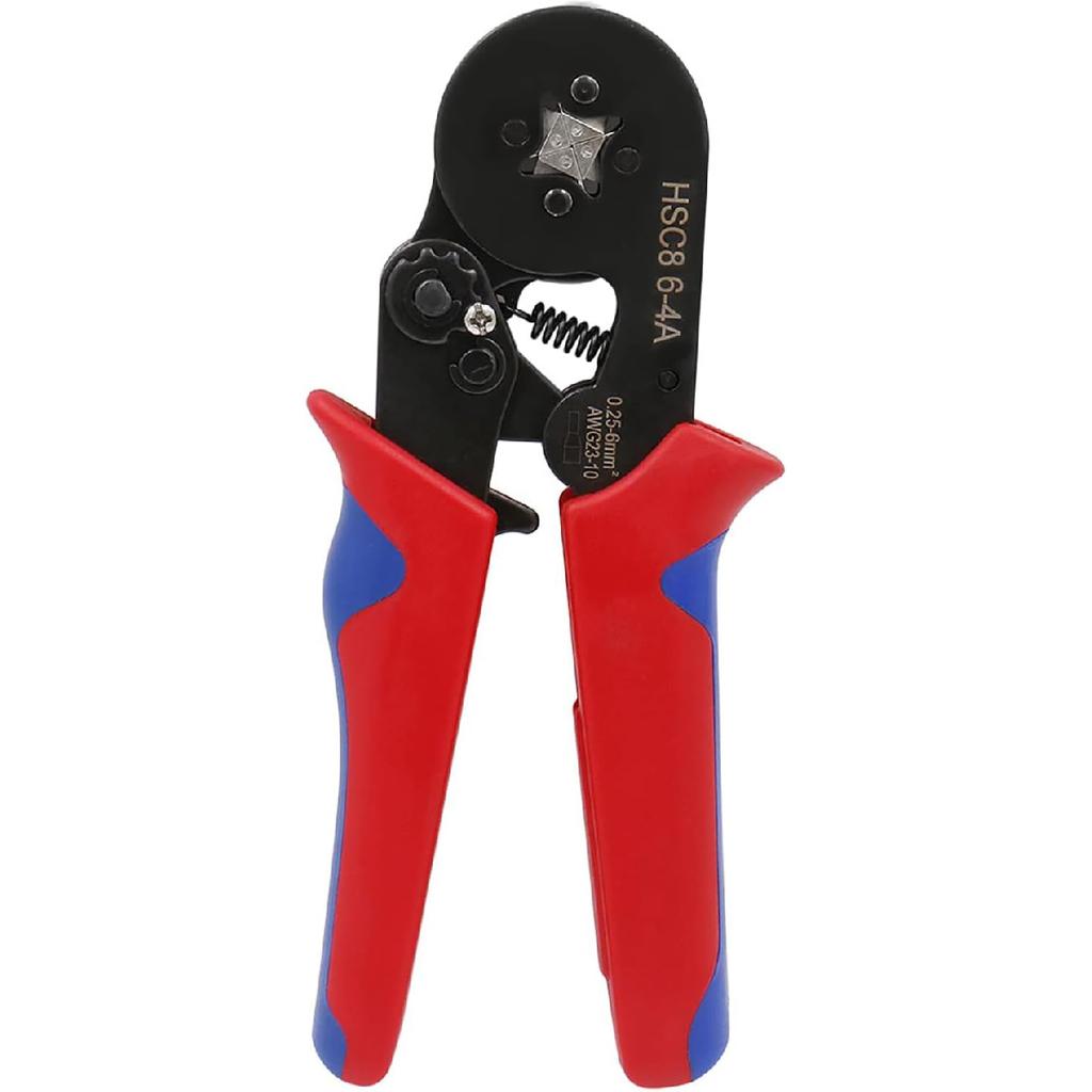 Baomain Crimping Plier HSC8 6-4A Self-adjustable Crimping Tools for 0.25-6 mm² AWG 23-10, Square Ferrule Wire Cable End-sleeves Red