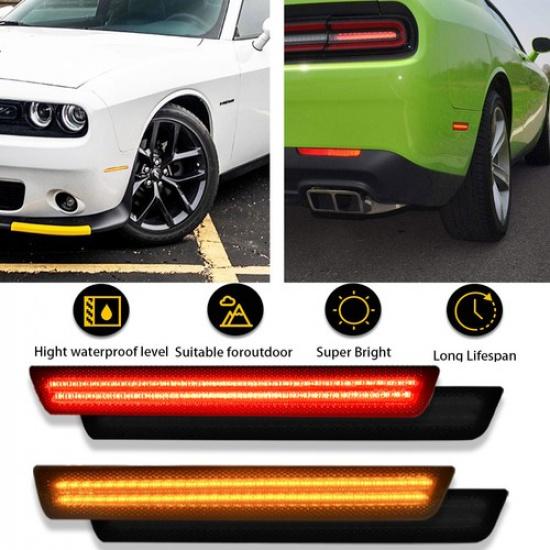 4x For 2015- Dodge Challenger Smoked Lens Side Lights Marker LED Front+Rear